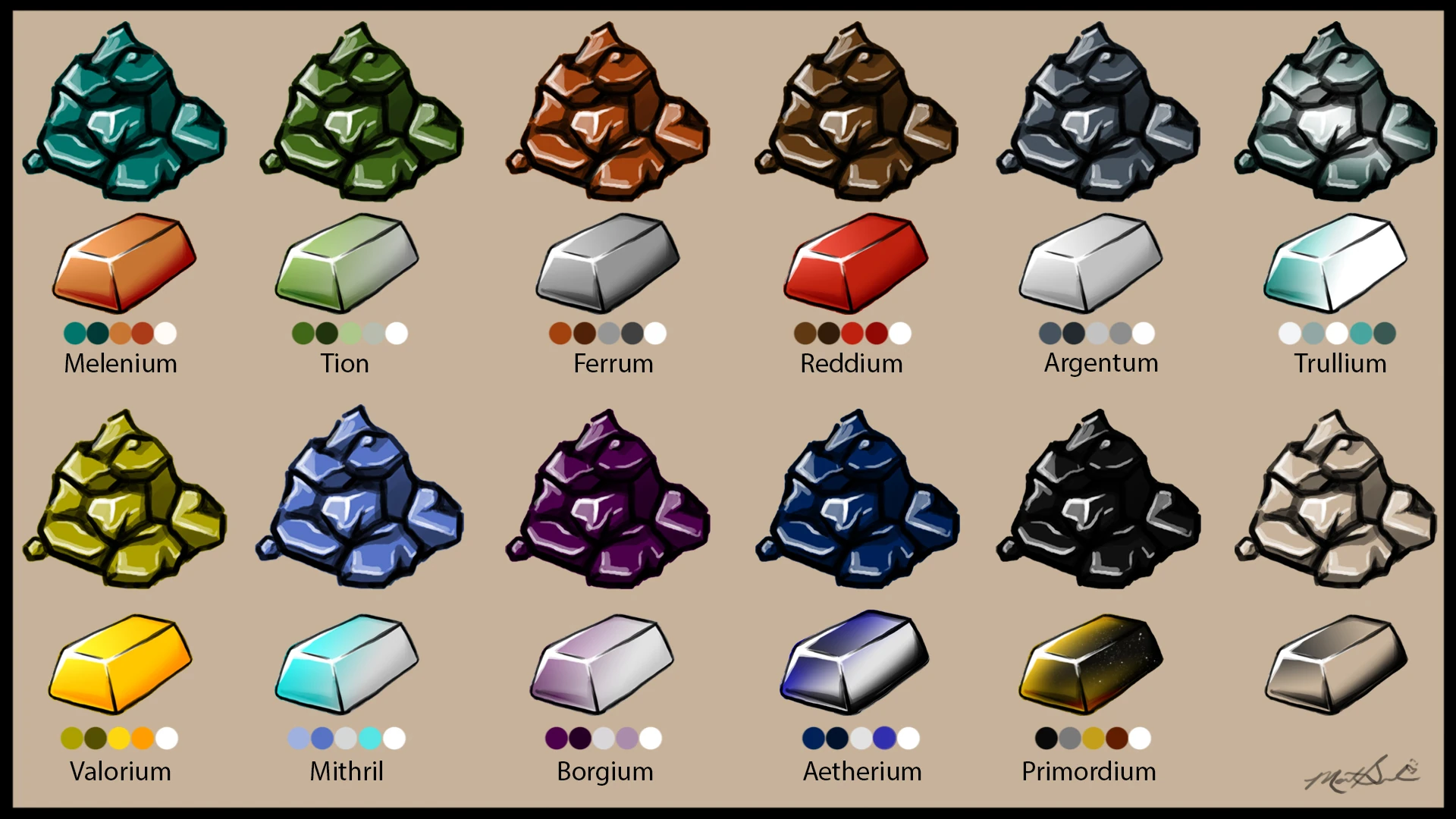Ores are one of materials in the Stash RPG acquired by the mining gathering skill. Players need a pickaxe to gather ores.